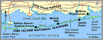 Island New York island (32 miles long, 1/4 mile wide). It supports a state park, a county park, the national seashore, many communities, and a 7 mile stretch from Smith Point to Watch Hill that is the only federally designated wilderness area in New York state. Featuring ocean beach, dunes, swale, maritime forest, salt marsh. Wide range of facilities, including historic estate and lighthouse, wilderness area and marina. Activities: Hiking, paddling, boating, surf fishing, wildlife viewing, swimming, beachcombing, camping.. |